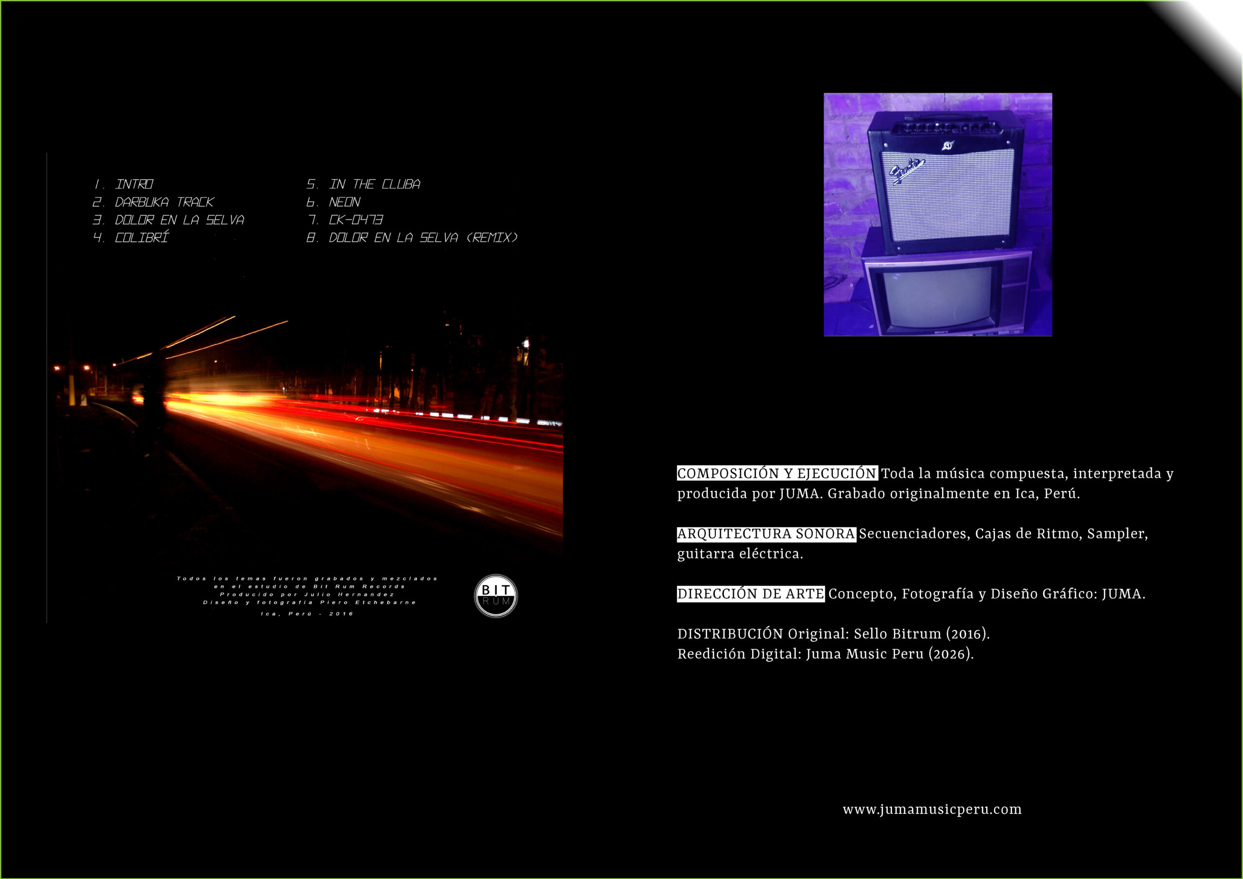 01. Intro 02. Darbuka Track 03. Dolor en la Selva (Andean-Industrial Fusion) 04. Colibrí 05. In the Cluba 06. Neon 07. CK-0743 08. Dolor en la Selva (Remix)